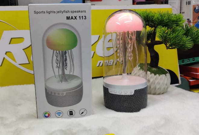 This Max-113 Colorful Jellyfish Lamp Bluetooth Speaker comes with some amazing features such as unique jellyfish design, version 5.0 Bluetooth connectivity, water tank simulation, built-in rechargeable battery, touch control, 360° sound, doubles as a nightlight, mood lamp, perfect for bedrooms, parties, or relaxation spaces, dimmable lights, compact lightweight, up to 6-8 hours of playtime, multiple RGB color options with adjustable brightness, works with iOS, Android, and other Bluetooth-enabled devices.