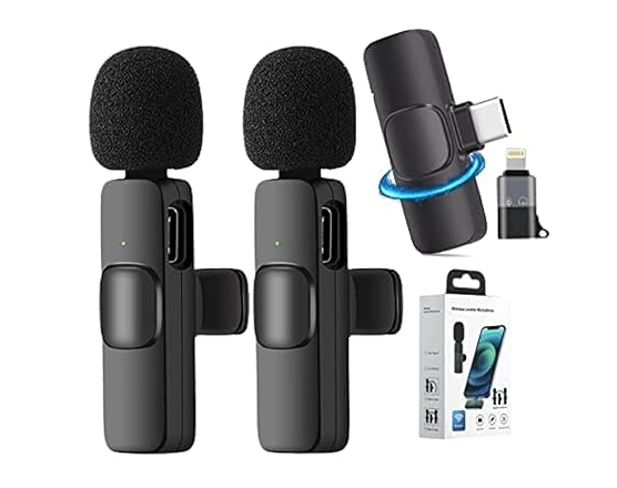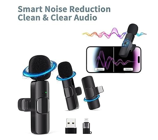 K9 Dual Wireless Microphone for USB-C Phone/iPhone Wireless Mic for Youtubers Facebook Live Stream for Recording Vlog (2 Microphone+ 1 Receiver) (Compatible with USB-C/iPhone)