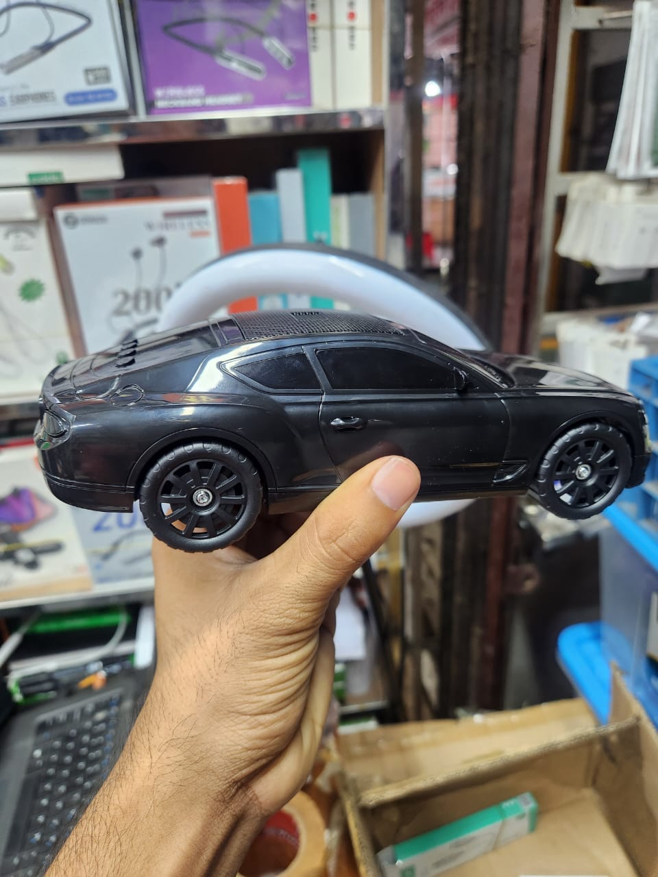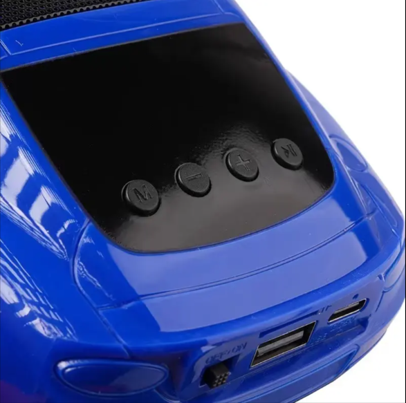 This X-701 is a car-shaped wireless Bluetooth speaker that has Bluetooth version 5.3 connectivity with a transmission range up to 10 meters. It features RGB LED light effects, high bass sound quality, multiple connectivity options, portable & lightweight, FM radio support, and is compatible with phone, PC, and laptop. Also, it has a 1200mAh rechargeable battery that can give a lifetime of up to 3-5 hours.